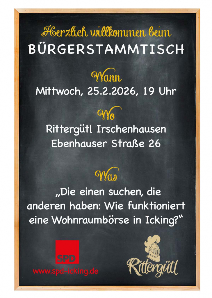 Seit 2026 könnt Ihr / können Sie die SPD Icking ganz einfach kennenlernen, nämlich auf einem Bürgerstammtisch, so wie es in Bayern Brauch ist.
